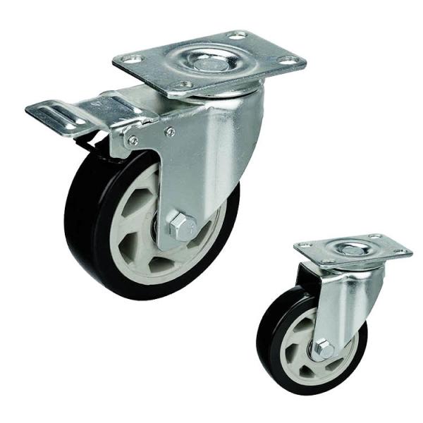 This one kind of pvc medium duty caster. Top plate swivel casters, top plate locking swivel type, threaded stem type, even bolt hole type are also available. No-marking, duralble and floor protecting.